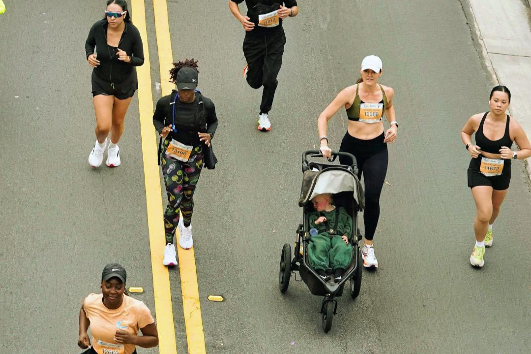 Below, Sarah shares the story behind the club, what running has taught her about motherhood, and the moments she’ll never forget from training and racing with a stroller.