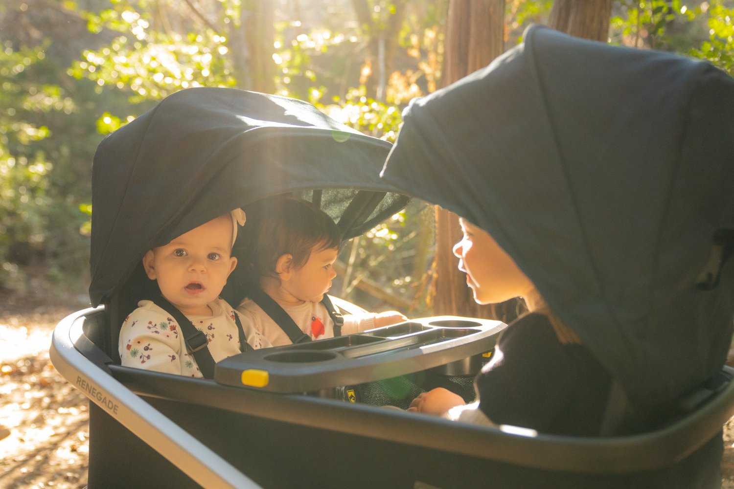 A day at the beach is a classic warm weather outing. You can use a beach wagon – like the BOB Gear Renegade™ – to haul all your beach essentials, from towels and toys to snacks and drinks. With a maximum weight capacity of 165 lbs. (child plus luggage weight), this 3-seater wagon provides ample room for kids to ride comfortably with plenty of space for essentials.
