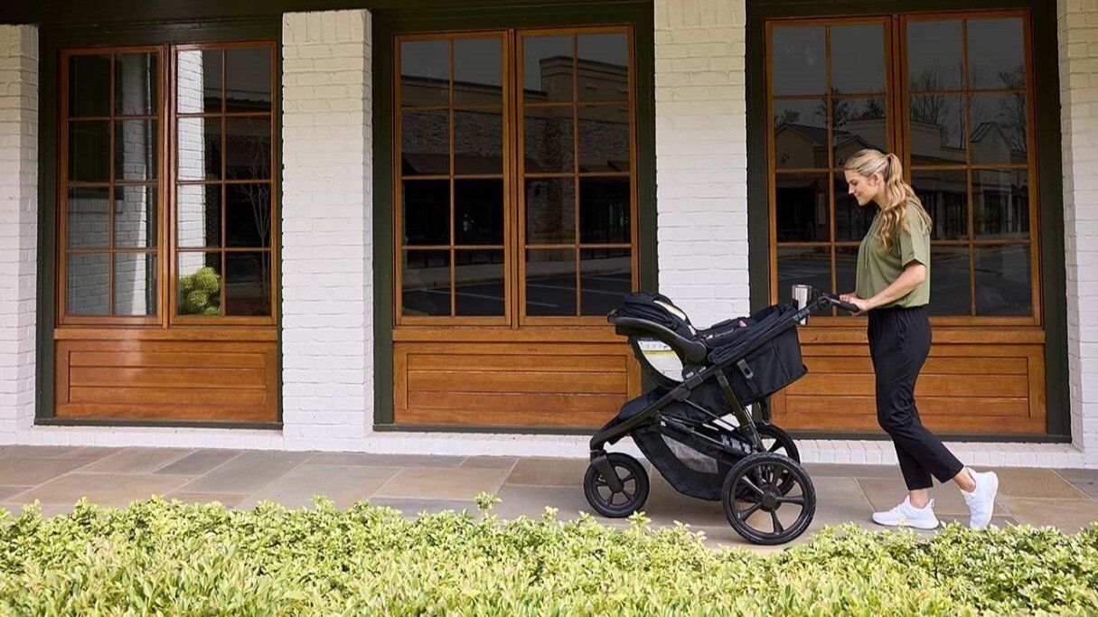 Once your little one is born, you can start taking walks together right away. For the first few months, they’ll ride in the infant car seat, which clicks into your stroller using the adapters. At eight months, your baby can generally ride safely in the stroller without a car seat while you run or jog. All kids are different, so talk with your pediatrician before you get ready to roll!